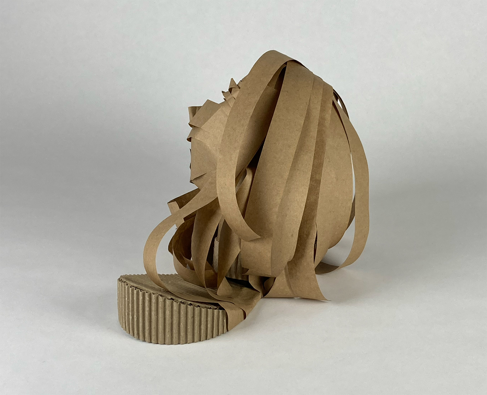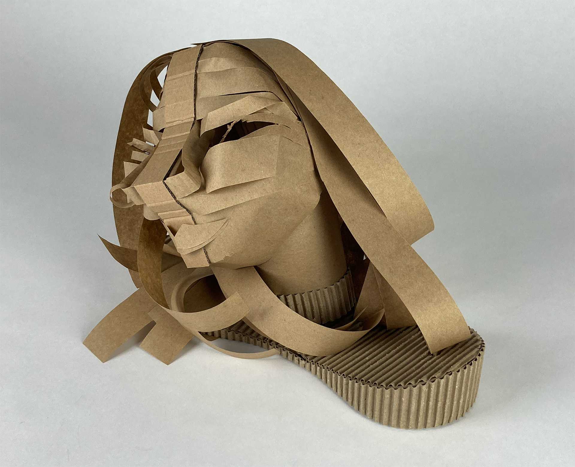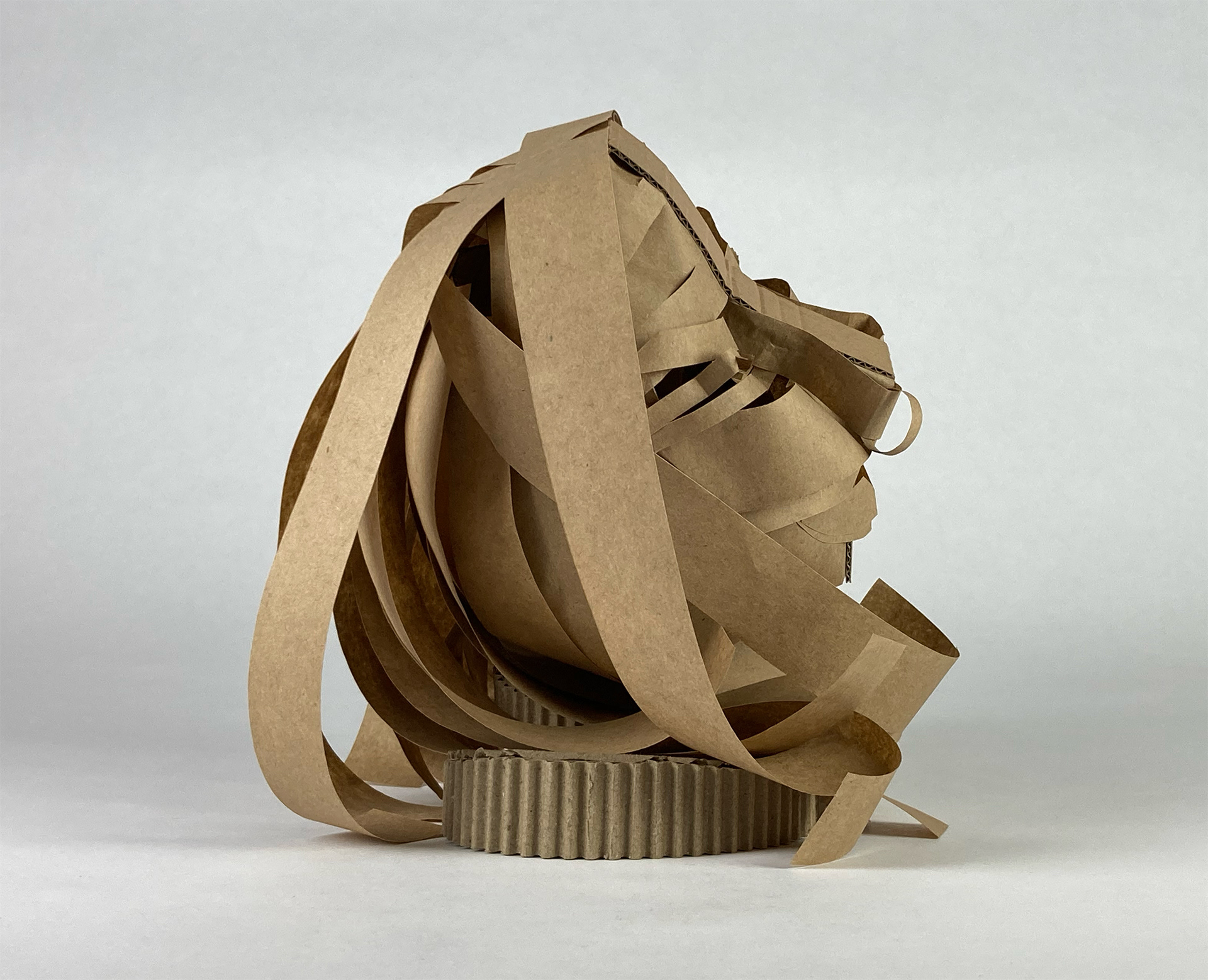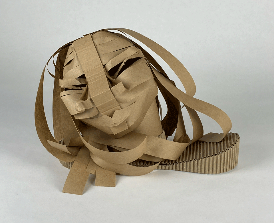 Coburn, Amanda Noel. "Self-Portrait in Cardboard," 2024. Cardboard and kraft paper, 12.5 by 9.75 by 9 in.